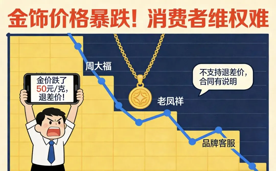 一觉醒来,黄金市场彻底天翻地覆!前一天还在疯抢的“硬通货”,隔天就成了烫手山芋,国内金饰克价单日暴跌超百元,老庙黄金一夜跌122元、老凤祥暴跌170元,周大福、周生生集体跳水,无数刚入手的消费者账面瞬间亏损,有人买个金镯子直接亏掉几千块!更让人气到炸裂的是,想退货止损?各大品牌直接关上大门,1-5%退货手续费硬性扣除,还有柜姐放话“退单一律扣500元,不接受任何理由”,这波操作直接把全网网友惹毛了!