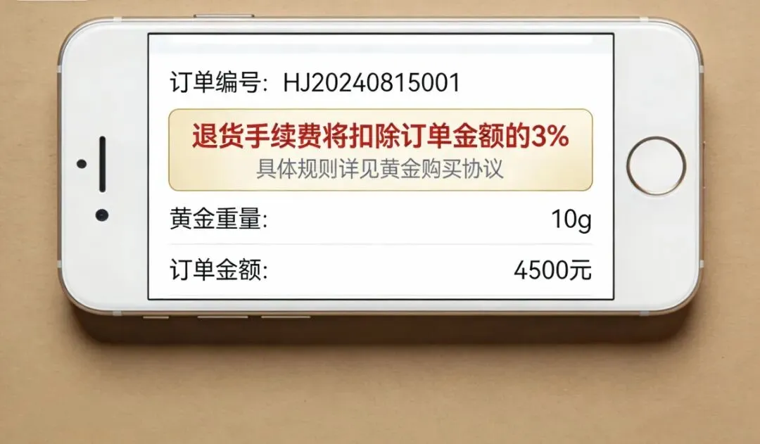 可没想到,退货的路被堵得严严实实!线下金店依旧奉行“离柜不退”的老规矩,不管金价跌多少,只要付了钱拿了货,想退款门都没有;线上平台更狠,直接祭出扣费大招,多品牌明确规定,生成物流单号或发货后再申请退款,一律扣除订单金额1-5%的手续费,还要额外承担快递运保费。