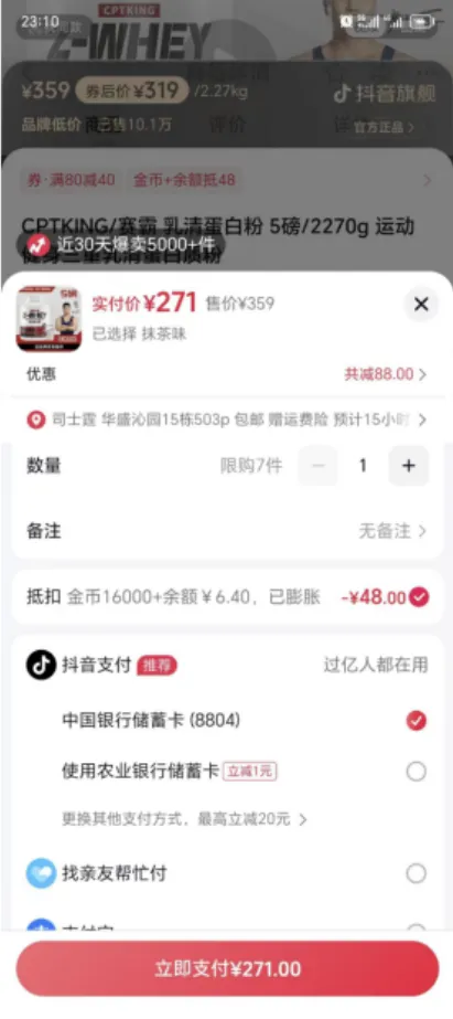 这里可以配合抖音极速版的膨胀金(概率),自己有时间的可以操作下,不然直接下单就行了