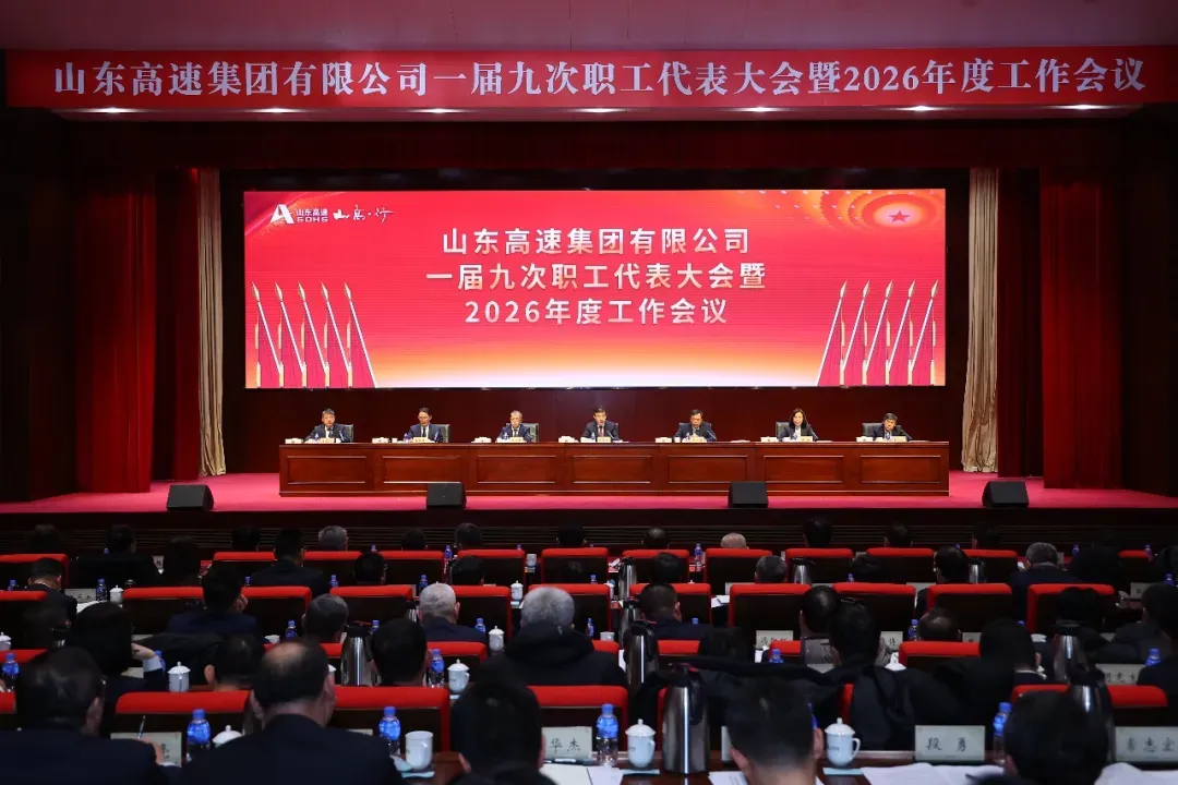 1月23日,山东高速集团召开一届九次职工(一届八次工会会员)代表大会暨2026年度工作会议,传达省领导重要批示及省属国有企业座谈会和全国、全省交通运输工作会议精神,全面总结公司2025年及“十四五”期间工作,科学谋划“十五五”发展思路及发展目标,安排部署2026年重点任务。集团党委书记、董事长王其峰出席会议并讲话,党委副书记、董事、工会主席李广进主持会议。