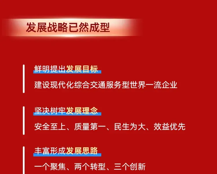 三要深化改革,打造做强做优的新标杆。要向改革要活力,进一步完善现代企业治理体系、优化落地市场化经营机制、持续推进优质资产证券化。要向布局要优势,放大综合交通主业优势,推动资源向交通工程建设、能源矿产、产融结合等关键领域高效集聚。要向创新要动力,推动“交通+”融合发展,持续扩展“蜀道”影响力。