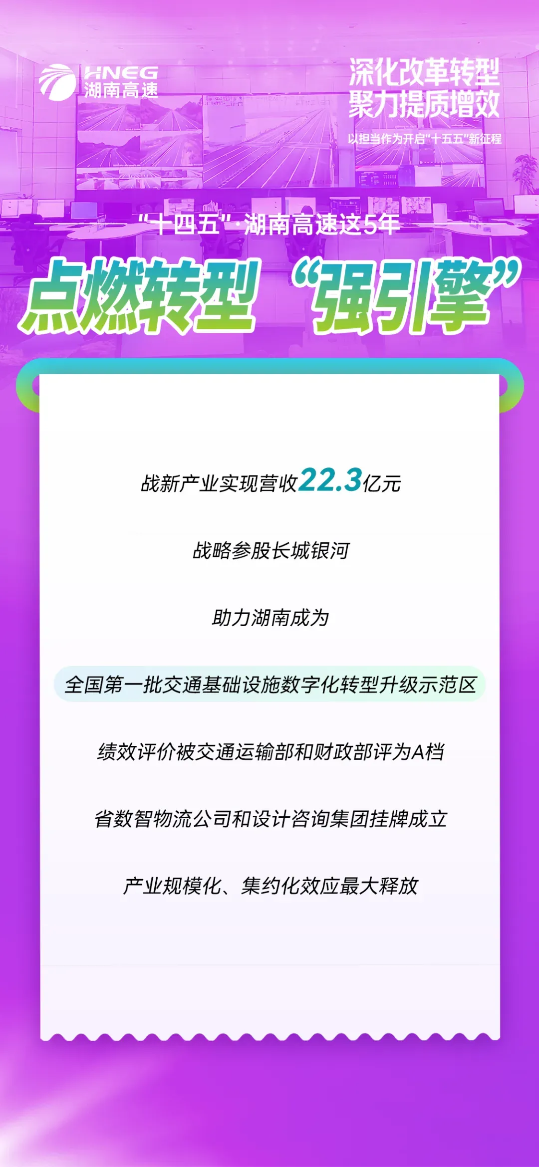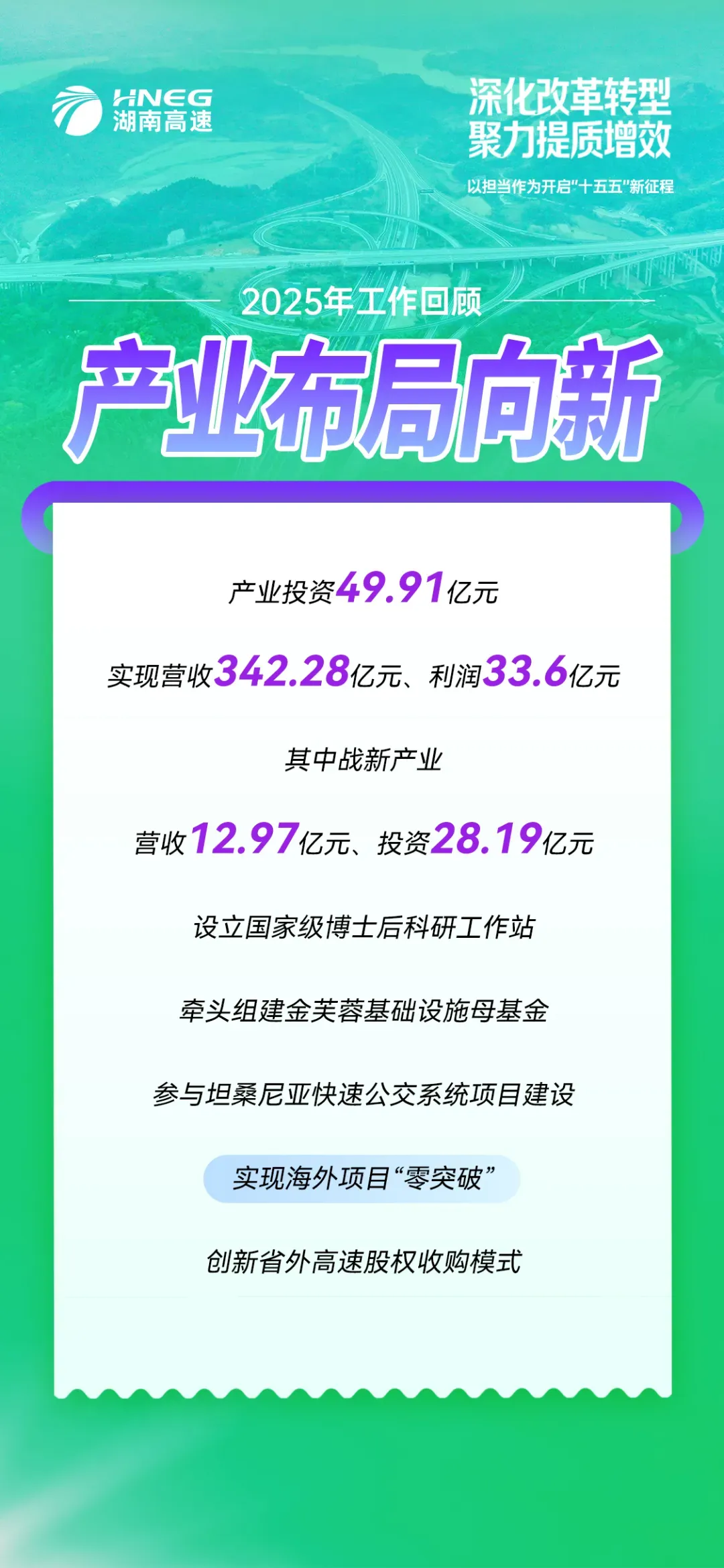 做大做强高速公路主业,产业结构向新提“质”,湖南高速集团高质量发展的动力更足、底气更足。