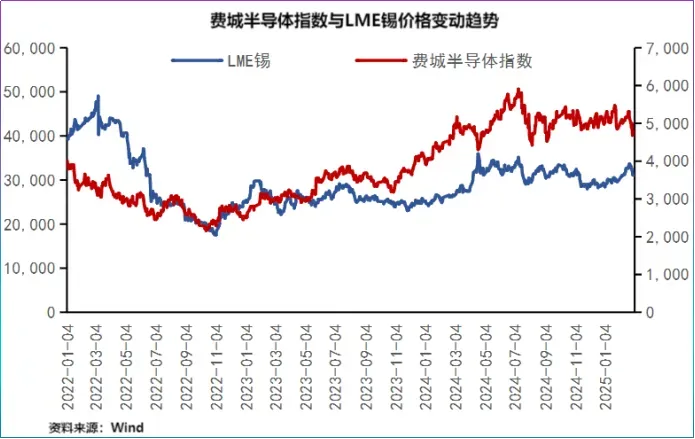 因为,锡需求高度集中在电子焊料,价格受电子、半导体等景气度影响,锑需求大头在光伏和阻燃剂,价格与光伏装机、环保导向关联强,两者价格变动通常不一致。