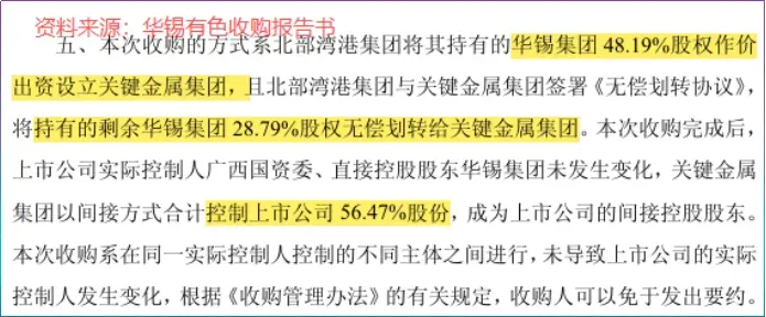 就在2026124日,公司实控人以华锡有色48.19%的股权作价出资,成立广西关键金属集团,收购完成后,广西关键金属集团持有华锡有色56.47%股权,为其间接控股人。