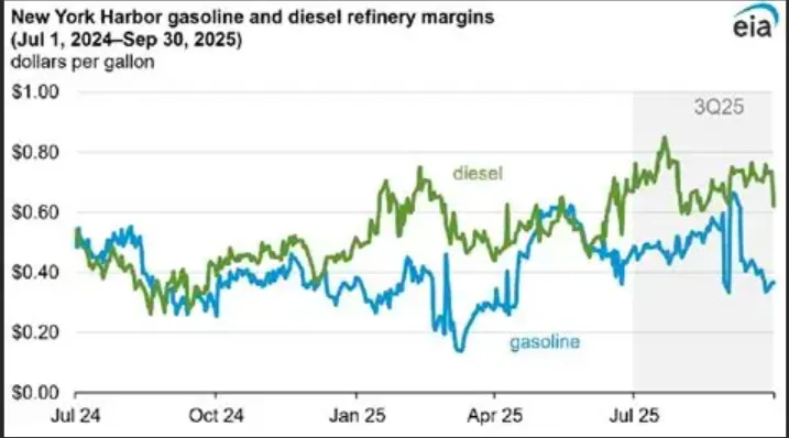 全球裂解毛利已于2025年第三季度触底反弹。受地缘冲突及多地区炼厂非计划停工与集中检修影响,供给侧扰动导致成品油市场呈现结构性紧张,与承压的原油市场形成背离,推动2025年11月全球炼油毛利创多年新高。关键指标显著走强:美国3:2:1裂解价差逼近年内高点;欧洲柴油裂解价差创15个月新高;亚洲汽油裂解价差亦维持高位。公司业绩印证了这一趋势:壳牌炼油板块利润率在2025年第四季度提升至约14美元/桶,高于第三季度的12美元/桶;瓦莱罗同期炼油业务运营收入激增至17亿美元。可见,2025年三季度确为阶段性底部,预计2026年一季度炼化毛利将不低于四季度水平。