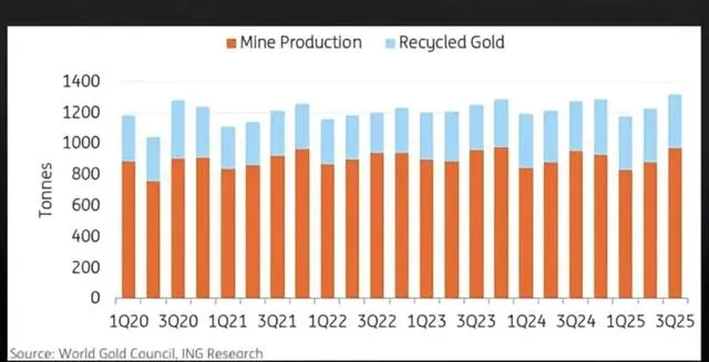 这反而让我想明白另一件事:黄金这东西,最大的特点就是,你再需要它,市场再热,它的产量也就那么多。它不像印钞票,想印多少印多少。