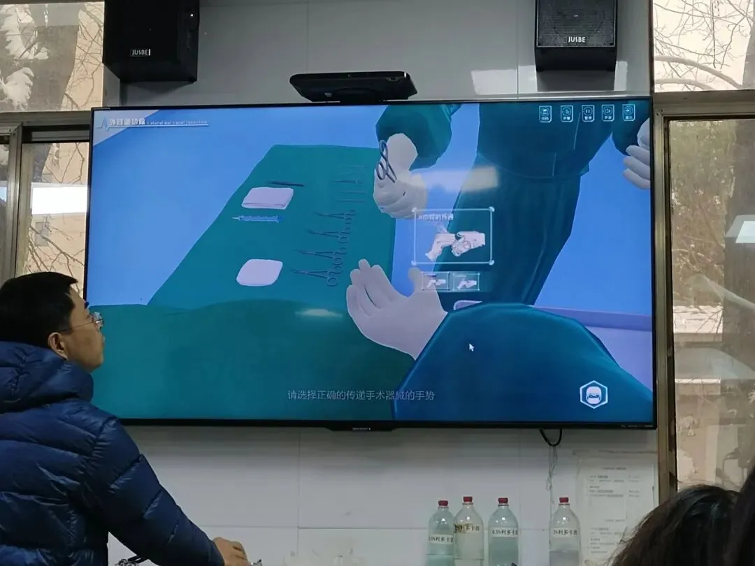 1月20日下午,姚大伟、夏继飞老师带领学生参观了兽医影像诊断中心、手术室和科研实验室。向同学们详细介绍了外科教学团队实验室的布局、功能,讲述了各种先进影像设备、手术设备、科研仪器设备的用途。组织学生观看《手术两百年》纪录片,让学生充分了解外科手术的缘起,发展的历程以及未来手术的发展趋势。部分同学戴上VR眼镜,体验了手术虚拟仿真教学。