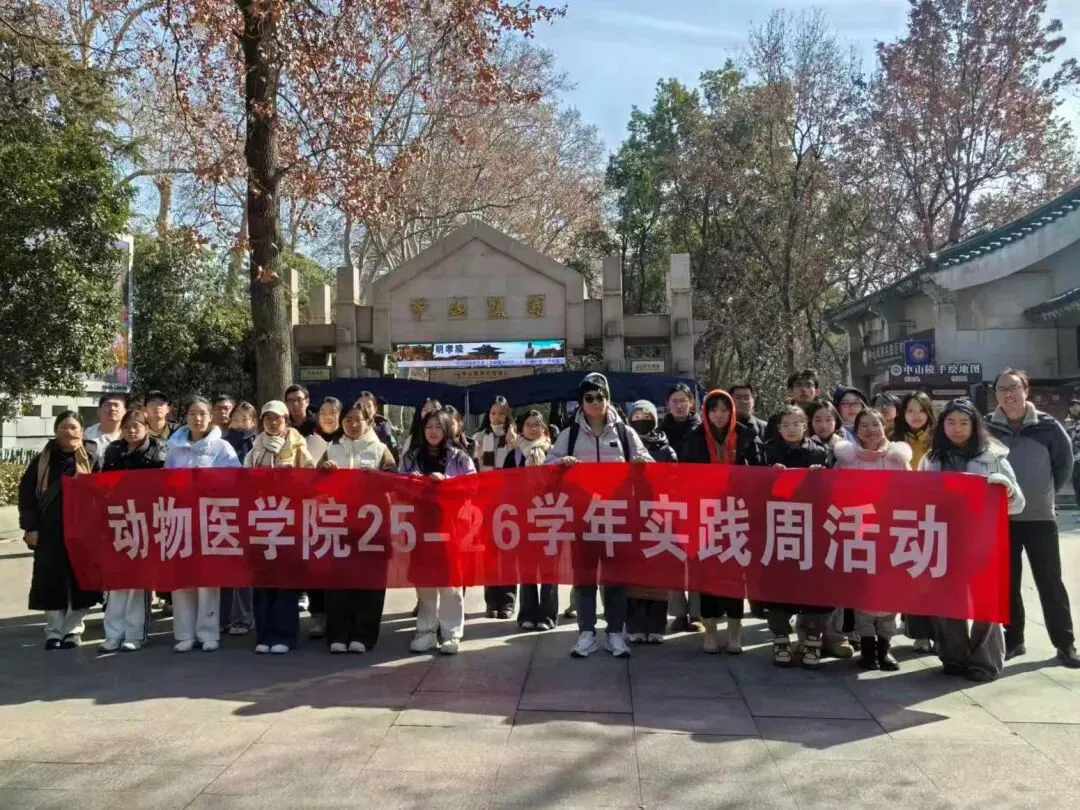1月22日,彭靖雯、马丹夫老师带领学生前往中山陵风景区,拜谒中山陵,参观抗日航空烈士纪念馆。通过缅怀革命先驱、致敬抗战英烈,同学们深刻体悟到爱国主义精神与科学报国的时代内涵,进一步强化了服务动物健康、保障公共卫生安全、助力国家生物安全的责任意识,坚定了“医泽众生、矢志报国”的兽医职业理想与使命担当。