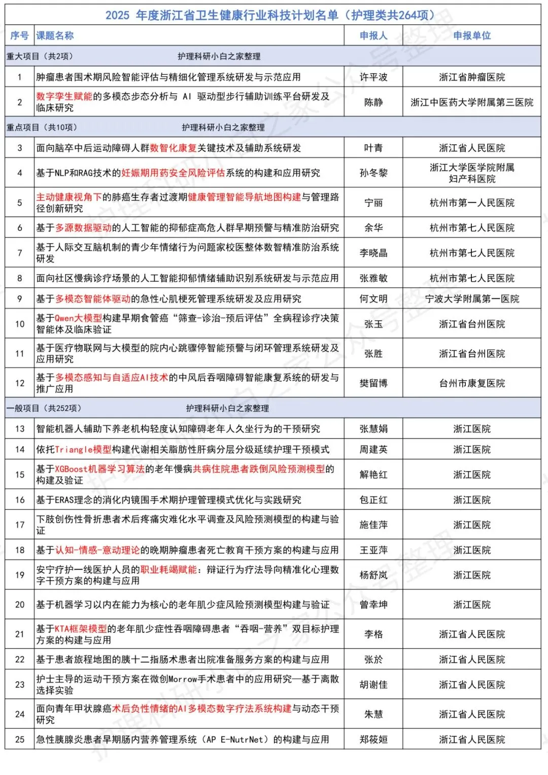 小白之家梳理了与护理相关的基金项目共264项,重大项目2项,重点项目10项,一般项目252项。