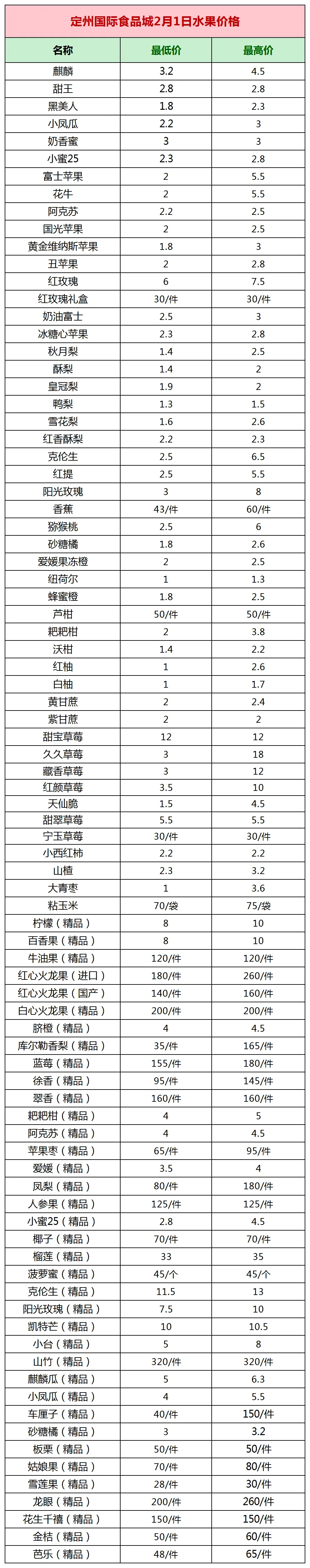 【民以食为天,365天,天天无淡季。为方便广大商户进货采买,获取最新蔬果信息,此微信号每日为您提供定州国际食品城蔬果行情。以下果蔬价格数据计量单位均为元/斤!果蔬价格行情波动比较频繁,请以实际购买单价为准!】