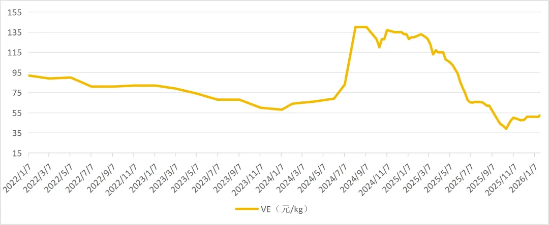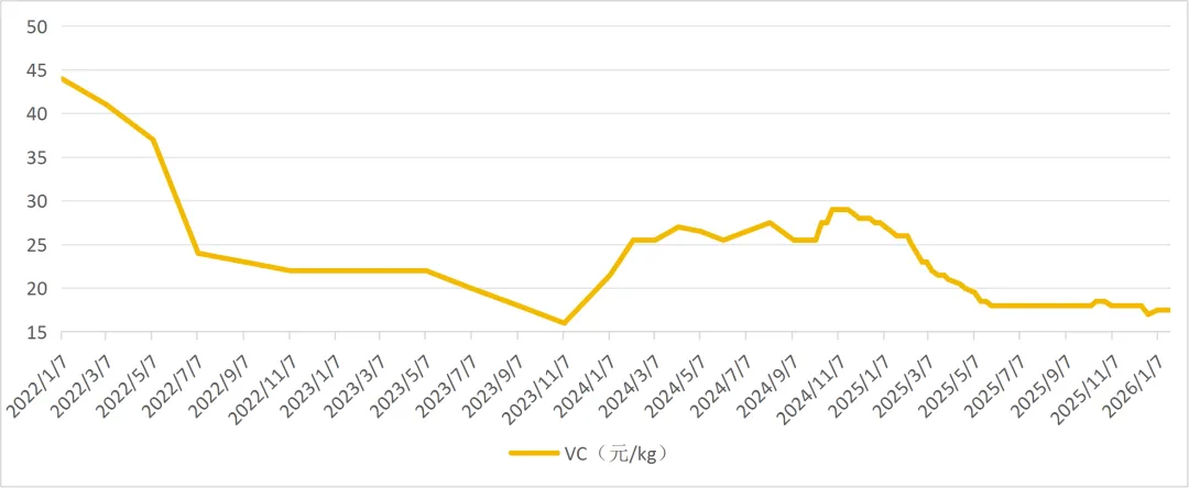 维生素系列价格呈现周期性波动,目前价格均已处于历史低位,未来维生素价格有望在低位企稳反弹。