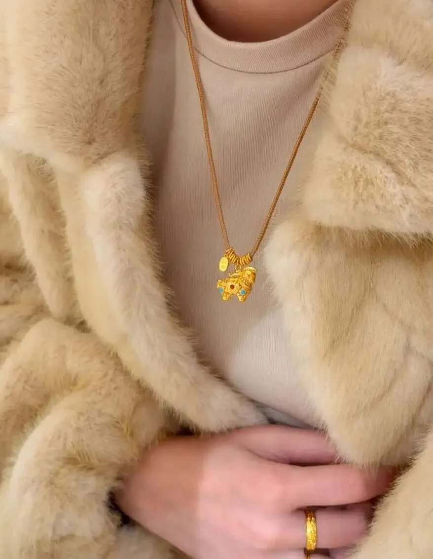 足金的优点就是颜色真的很美 那种润润的黄 不是刺眼的 这种日常穿白衬衫 或者简单T恤 随便一戴 就会有一种effortless的高级感 我那天穿了一件灰色针织裙 配这条锁骨链 出门喝咖啡的时候 店员直接问我 这个是哪里买的 感觉挺贵的样子 然后我当时在心里偷笑 因为价格其实比我想象中友好很多的