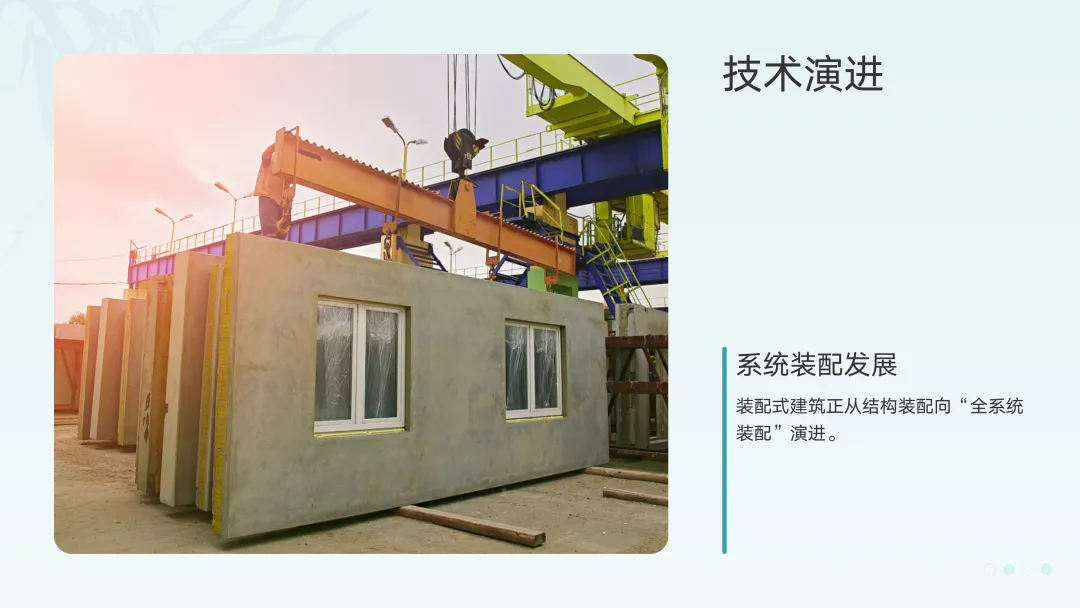 装配式建筑不是新概念,但在政策驱动、成本倒逼和技术成熟的三重作用下,已进入规模化应用的前夜。政策层面:据行业统计,全国已有超过XX个省份出台装配式建筑发展目标,其中一线城市新建建筑装配化率要求普遍达到XX%以上。政策已经从"鼓励推广"转向"强制要求"。经济账算得过来了:传统现场作业模式下,人工成本占项目总成本的比例已从X年前的XX%上升到现在的XX%以上。而装配式建筑通过工厂预制、现场组装,能减少XX%-XX%的现场用工量。虽然初期投入较高,但全周期来看,工期缩短带来的财务成本节约、质量提升带来的维修成本下降,使得整体ROI(投资回报率)已具备竞争力。更重要的是,装配式建筑正在从结构装配向"全系统装配"演进:- 内装工业化:整体卫浴、集成厨房、装配式隔墙等内装部品体系日趋成熟,让装饰环节也实现了"像造汽车一样造房子"。