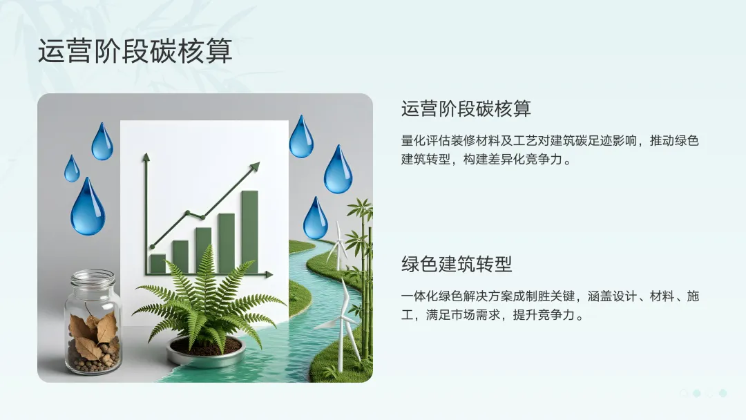 - 运营阶段碳核算:建筑全生命周期碳排放核算体系逐步建立,装修阶段的材料选择、工艺工法对建筑"碳足迹"的影响将被量化评估。