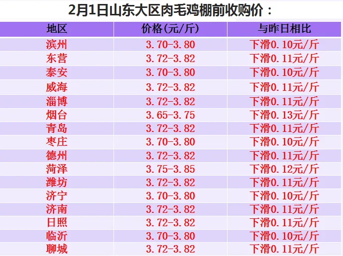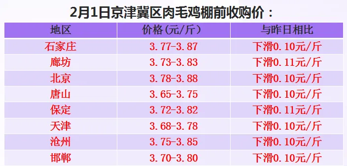 >2026年2月1日肉鸡价格速递