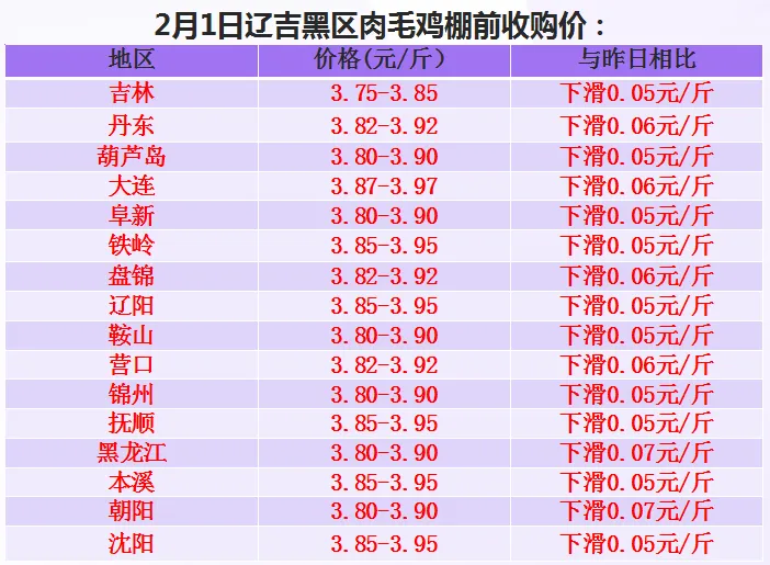 2026年2月1日肉鸡价格速递