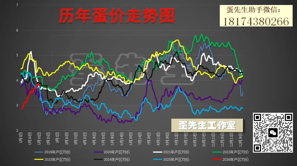 蛋价:昨天(1月31日星期六)全国蛋价有稳有落,红蛋产区稳定,粉蛋加速回落,各地走货快慢不一。昨天产区均价3.79/斤,较前天下跌0.07元;销区均价4.11元/斤,较前天下跌涨0.07元。淘鸡:昨天全国淘鸡价偏稳运行,其中产区红鸡棚前均价4.88元/斤,与前天持平;粉鸡棚前均价4.19元/斤,与前天持平。这几天以河北、湖北为首的粉蛋产区加速下跌,红蛋预计也快顶不住了,节前下跌之势已经形成,那么节后会跌到什么位置,低迷期持续多久,什么时候开始回暖?以下为蛋先生个人分析,仅供参考,不构成任何投资建议和价格承诺。 个人看法:节后蛋价将迎来季节性回落,但底部有支撑,节后低迷期比往年短。供应端:节后产蛋鸡存栏仍处高位,但2025年下半年补栏同比大幅下降,节后开产小鸡进一步减少,叠加部分老鸡换羽形成的产蛋断档期,节后供应压力有望进一步缓解。