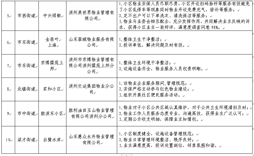 滨城区物业行业“红黑榜”情况通报,红榜企业10家、黑榜企业6家