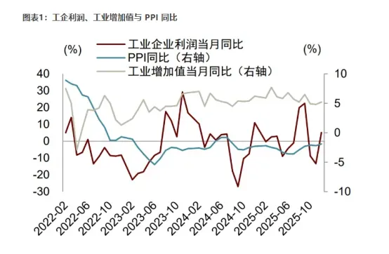 展望未来,在2025年工业企业利润增速以增长收官的背景下,今年有望延续回升态势。从政策层面来看,反内卷举措改善了企业竞争环境,缓解了无序竞争对盈利的挤压;需求层面,在大宗商品价格阶段性上行以及出口维持较高景气度的背景下,相关行业需求和价格中枢得到支撑,对工业利润形成一定提振。我们认为下一步主要观察两个方面,一是内需扩张相关政策节奏。一方面,实物消费支持政策有望提振扩围;另一方面,服务消费仍具较大增长潜力。二是外需与地缘风险,考虑到中美关系恶化风险显著降低,同时我国出口市场多元化的持续推进,外需在未来一段时间内将呈现较为稳定的状态。但仍需持续关注地缘风险及美联储降息路径对外部环境的影响。