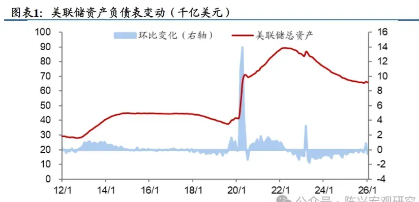 如期按兵不动。本次议息会议中,美联储结束了自2025年9月以来连续三次降息操作,将利率稳定在3.5%-3.75%的目标范围内,符合预期。3月大概率延续按兵不动,鲍威尔在本次新闻发布会上表态明显偏鹰,对经济增长前景乐观,对劳动力市场的担忧减弱,若一季度失业率未出现进一步走高,美联储大概率不会进一步降息。关于资产购买,美联储维持现有资产负债表操作,继续购买短期国债以保障市场流动性。我们认为,一方面,失业率回落和薪资增速反弹是亮点,12月新增就业继续减少,11月职位空缺数、空缺率均创新低,表明就业市场继续承压。通胀有继续走低的驱动,住房通胀大趋势仍在放缓。另一方面,美联储持续降息后,对经济的提振效应开始逐步显现,美国经济有望迎来阶段性企稳。