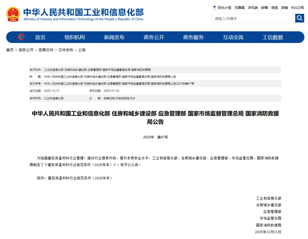 >【HVAC】建筑保温材料行业规范条件(2025年本)发布