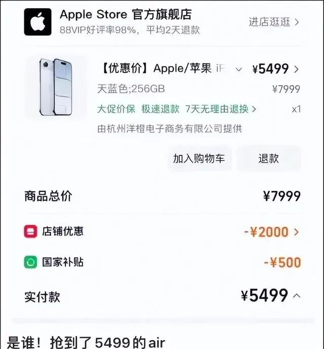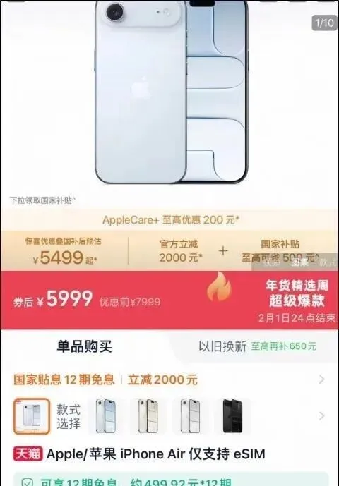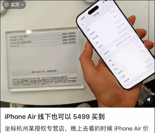 三个月前的iPhone Air,首发价7999元,今天5099元,降幅超过2900元。不是促销,不是活动,是苹果自己带头砍价,叠加国补、以旧换新,几乎腰斩。首发用户一夜变韭菜,二手平台直接挂出“避雷帖”,转手一台亏两千六,历史罕见。有人说这叫清仓,有人说“卖不动”,但真相是:根本没人买。