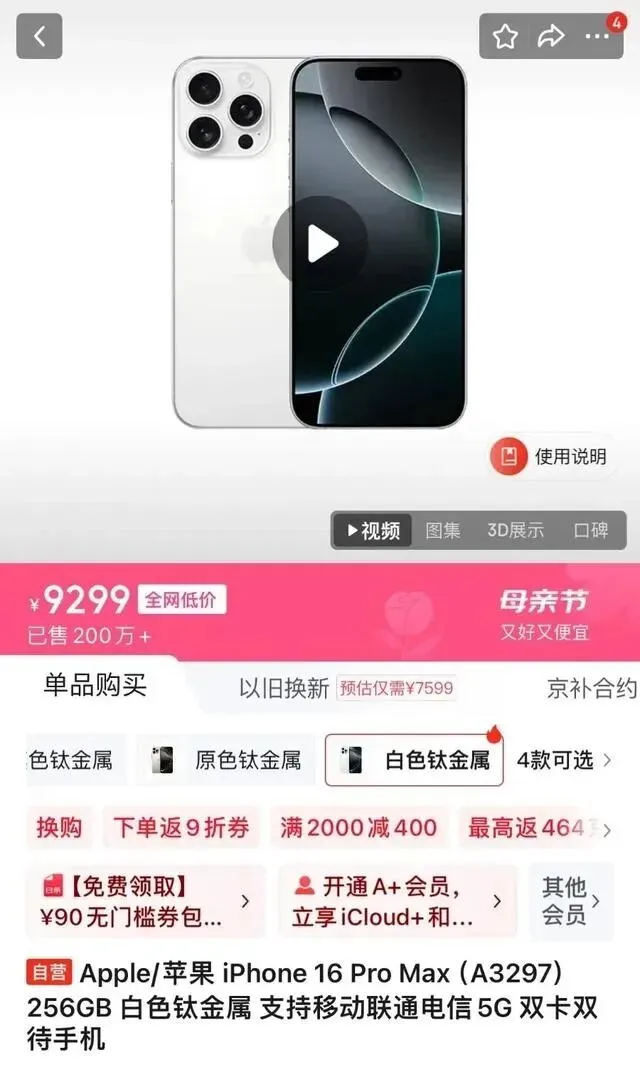 再看价格,iPhone 17 Pro Max上市一周,第三方就跌破指导价,顶配一口气降近千元。京东自营、天猫旗舰店、拼多多百亿补贴轮番发力,256GB版到手价冲到9299元,双十一叠加券甚至有望跌到8699元。128GB的iPhone 16 Pro预测618期间能干到5600元以内。以前加价抢的iPhone,如今刚上市就破发,深圳华强北摊位“降价”标签贴了一排。用户不再为溢价买单,二手市场更是一天一个价,黄牛亏得叫苦。