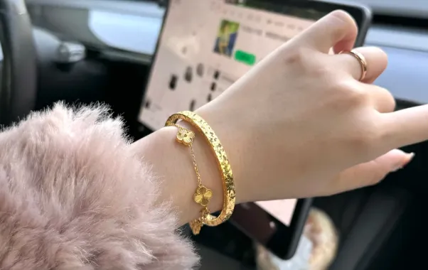 你们别怕硬金这词听着很铁汉 其实戴起来又软又贴合 绝对不咯肉 试了一下直接“哎呀妈壳”——厚度竟然很有安全感 不是那种一下就能掰弯的小脆皮 老师傅当场还给科普了一堆 说古法工艺现在用得好就是为了防走形 有层细微沙面的感觉 你戴点指甲油随便一晃就是千万级贵妇那种气质 谁懂???对了 我还特意问了价格其实果然不便宜 但也没我想象中吓人 能砍到差不多八千以内 说实话对同等手感别的大牌饰品真算真香!