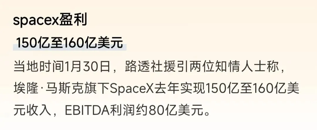 新闻1,马斯克的Space X去年盈利150亿美元至160亿美元