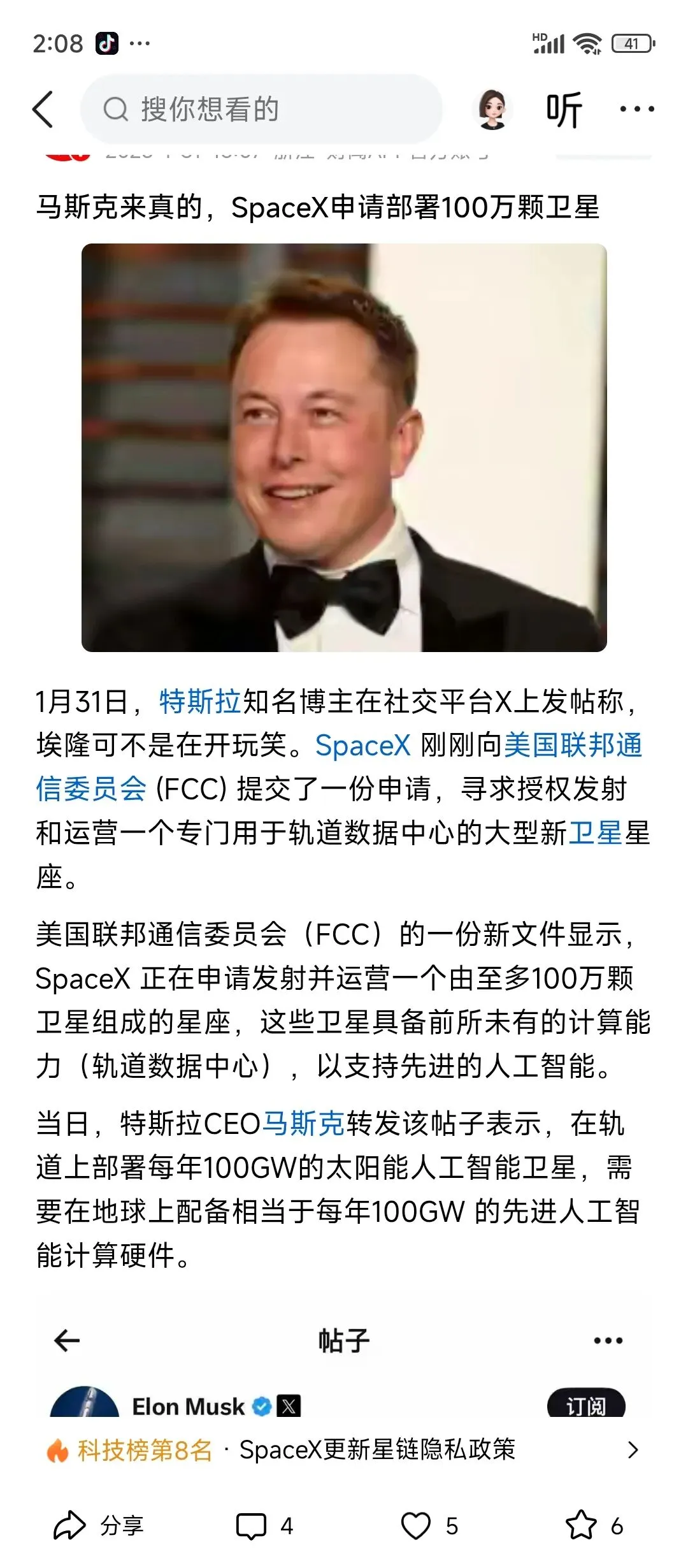 新闻2,SpaceX申请部署100万颗卫星,组成轨道数据中心。