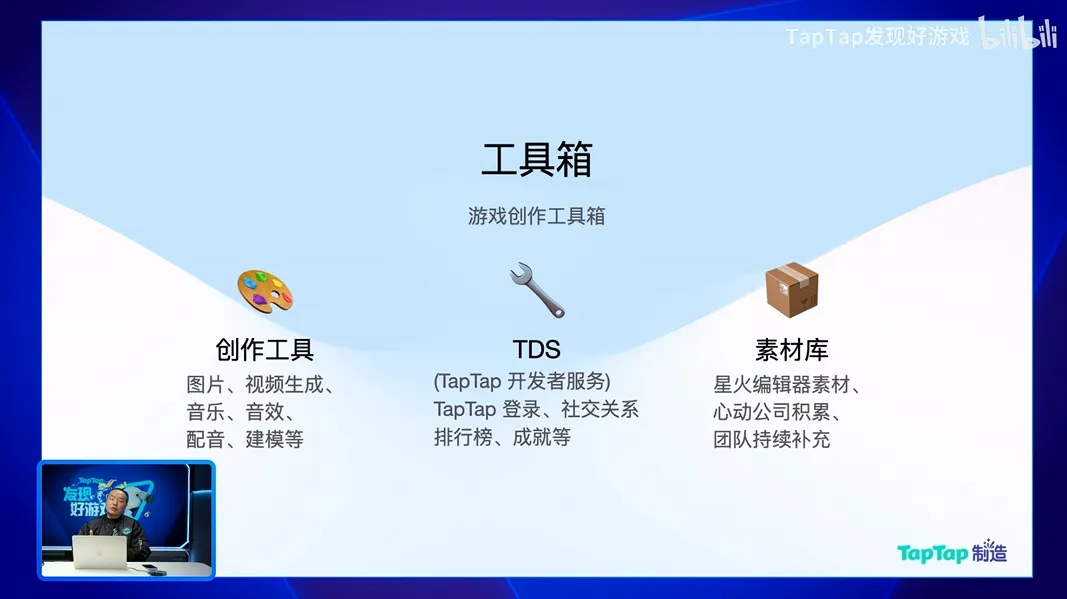 如果今天作为一个创作者,如果我花非常多的精力在每一个领域进行探索的话,确实在每一个领域都能找到合适的模型和工具。但是在TapTap制作,这一切都是创作者不用去关心的。