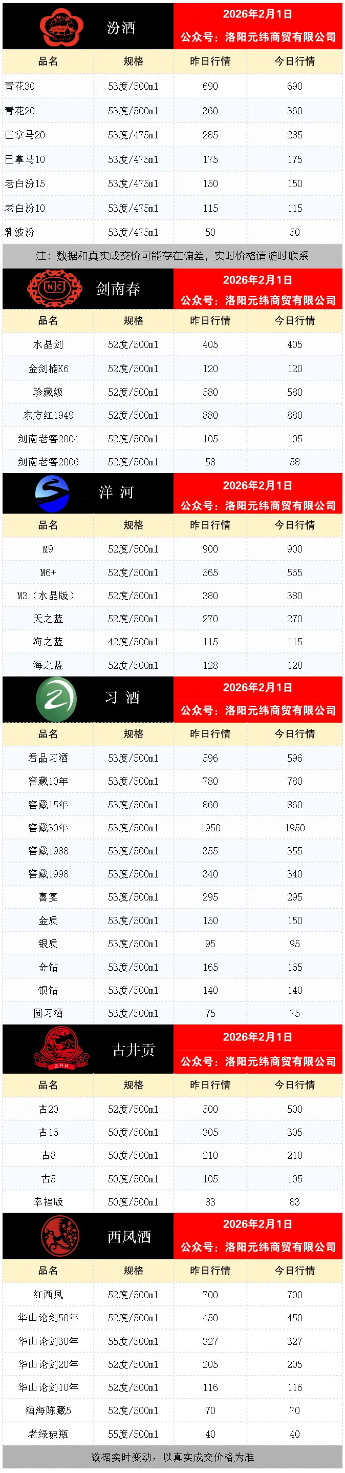 (2)以上表格信息,所提供价格均为商品批发参考价,仅供酒商参考,与市场零售价存在一定价差,与批发成交价也存在一定价差,实际成交价格以当地价格为准。