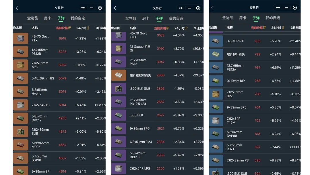 赛季初很多人做3*3任务,需要使用指定枪械,所以大部分枪械子弹价格大涨。