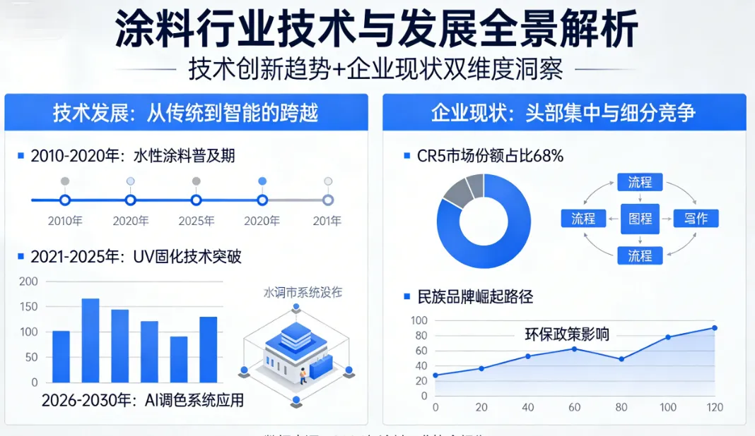 国内层面,三棵树、东方雨虹、嘉宝莉等领军企业,紧跟数字化转型趋势,加大AI与信息化投入,逐步缩小与国际龙头的差距。三棵树打造“数字三棵树”战略,搭建AI研发平台、智能生产车间与数字化营销体系,实现从原材料采购到产品交付的全流程可视化管控;东方雨虹聚焦高端功能涂料领域,借助AI技术优化配方研发,同时搭建MES信息化生产管理系统,实现生产过程的自动化调控与质量追溯,产品合格率稳定在99.8%以上;嘉宝莉推出AI智能调色系统与数字化经销商管理平台,既提升终端服务效率,也实现对经销商的精准赋能,进一步扩大市场覆盖。头部企业凭借AI+信息化的先发优势,在环保合规、产品创新、效率提升等方面形成壁垒,市场集中度持续提升,2025年国内头部10家涂料企业市场份额已突破35%,较2020年提升12个百分点。