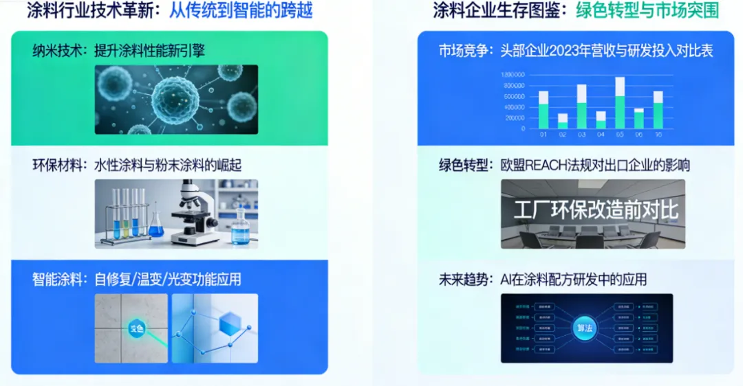尽管行业两极分化明显,但整体协同升级的趋势日益凸显,政府、行业协会、企业正形成合力,推动涂料行业的数字化、智能化转型。政府层面,出台多项政策支持涂料行业的绿色化、数字化发展,鼓励企业加大技术创新投入,推广AI、信息化技术的应用,对符合条件的转型企业给予资金补贴与政策扶持。行业协会层面,搭建技术交流平台,推动头部企业与中小企业的合作,促进AI技术、信息化经验的共享,助力中小企业降低转型成本、提升技术水平,同时推动行业标准的完善,规范行业发展。