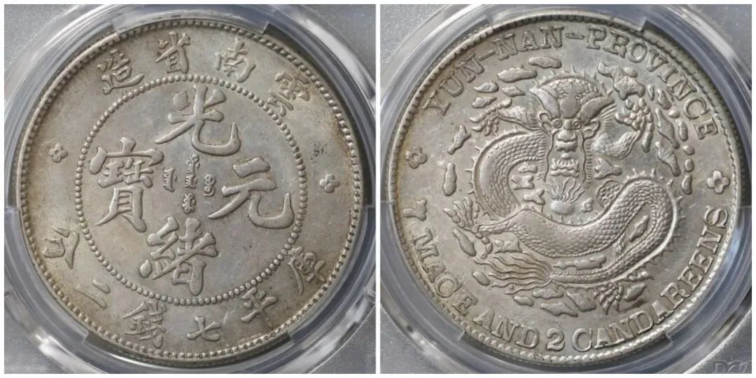 云南省造光绪元宝七钱二分新龙NGC AU55 华夏古泉19210元