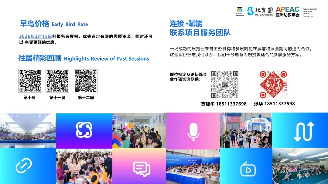 2026年度盛会即将开启,2026年4月10-12日,第十三届亚洲幼教年会&APEAC教育博览会相约杭州,“十五五”最新政策趋势解读+托幼一体高质量发展峰会+园所转型破局实践探索+创新特色示范园参访+托幼渠道商论坛+新项目对接会+合作洽商会+巡馆寻宝+线上线下联动分享交流,展位预定,论坛分享,项目推广,示范园参访、参会学习全面开启,欢迎大家一起来约