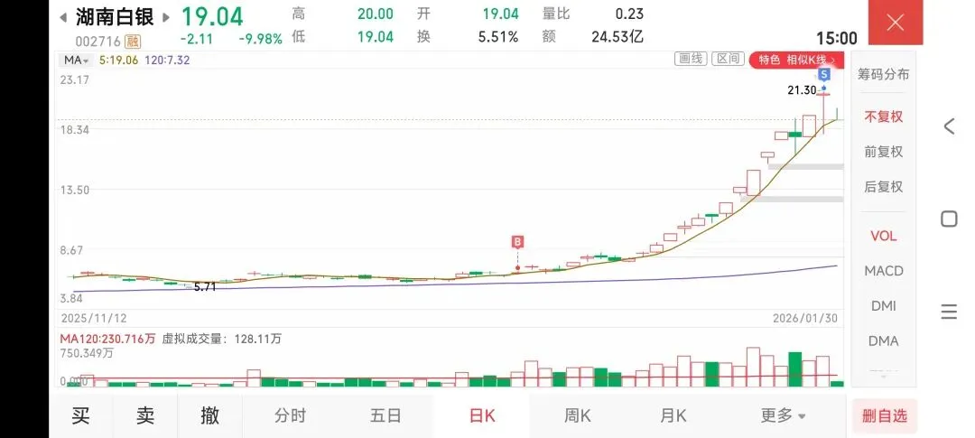 在此背景下,我采取快进快出的策略,我觉得有色白银感觉见顶了我,高位又出现神奇数字,我赶在跌停的前一天都出清了,不然卖都卖不了,我是幸运儿,也算卖在了最佳的位置。我现在的操作权当“打酱油”。