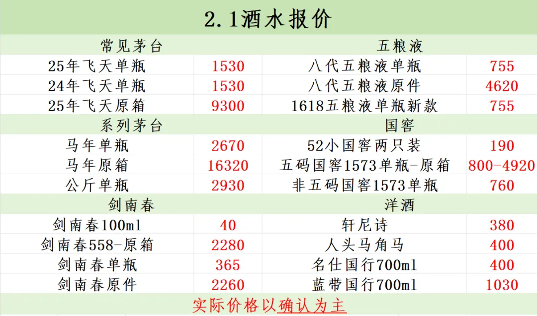 2026年2月1日飞天茅台酒价格行情丨53度飞天茅台酒丨茅台生肖酒丨酱香型白酒表和图片