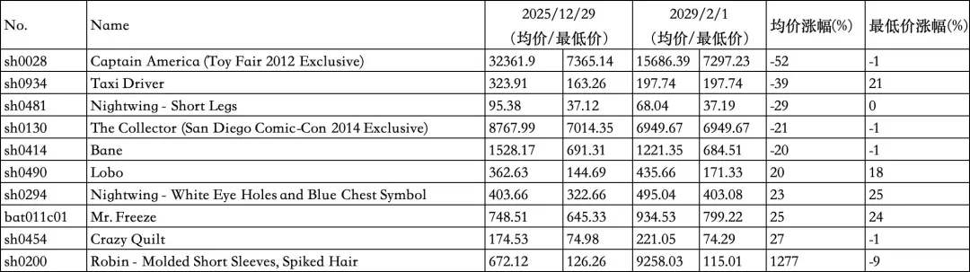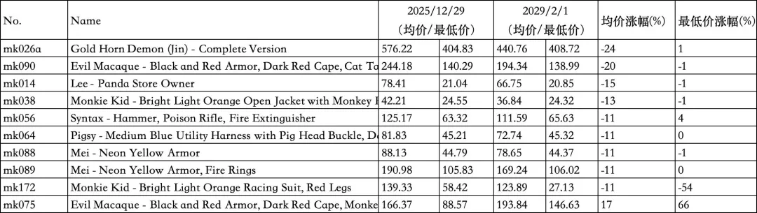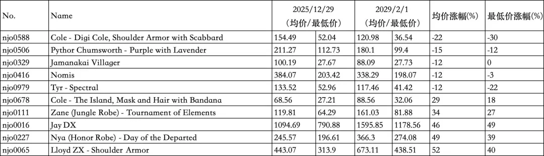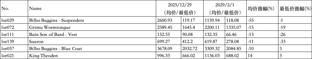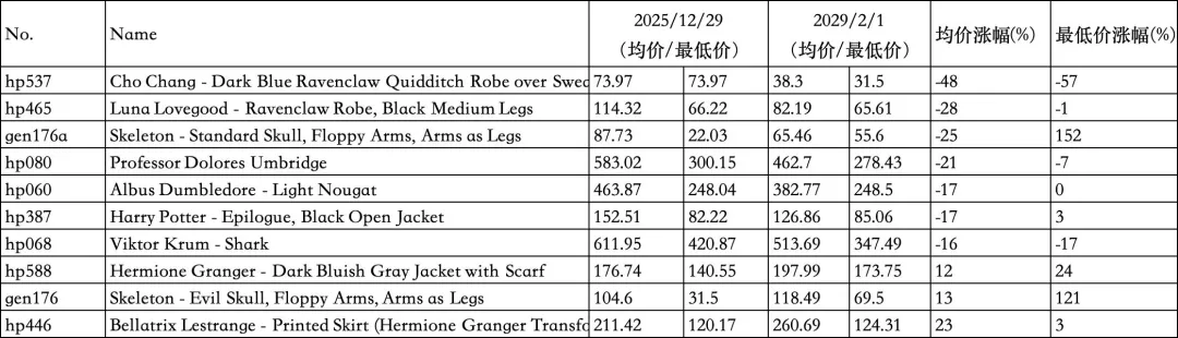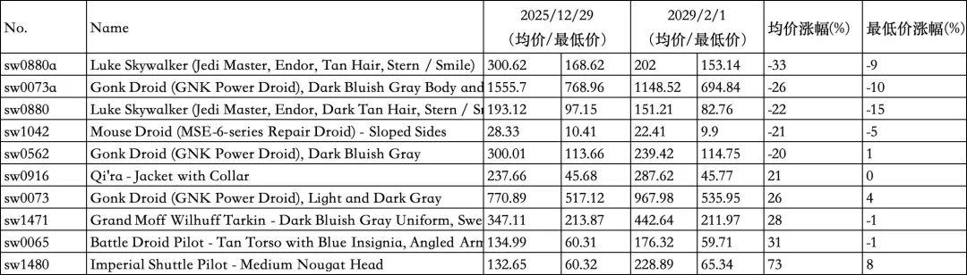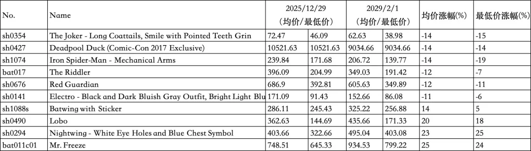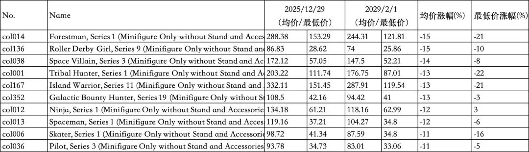 >乐高人仔价格涨跌幅(2026年1-2月)