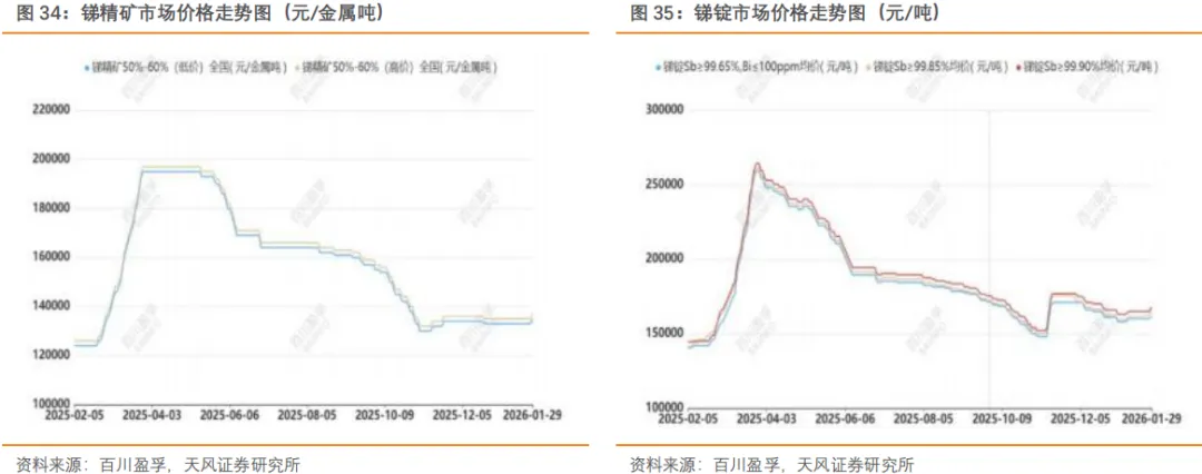 综述:本周(2026.1.23-2026.1.29)国内锑锭价格上涨。2#高铋锑锭市场价格为16.05万元/吨,2#低铋锑锭市场价格为16.15万元/吨,均价较上周同期上涨0.15万元/吨;1#锑锭市场价格为16.45万元/吨,均价较上周同期上涨0.225万元/吨;0#锑锭市场价格为16.8万元/吨,均价较上周同期价格上涨0.3万元/吨;本周氧化锑价格上调,99.5%三氧化二锑市场价格13.55万元/吨,99.8%三氧化二锑市场价格14.1万元/吨,均价较上周上调0.1万元/吨;本周锑市场价格整体呈现坚挺上行。供应端维持紧张格局。一方面,国内原矿北方地区受严寒天气影响,矿山有效开采期将在5月份左右。另一方面,尽管近期有进口矿补充,但因其品味、成分及加工适应性问题,实际能有效转化为国内市场的锑金属供应增量有限。受此影响,冶炼厂普遍不愿低价出货,加之自身持有的锑锭多为前期高成本原料所生产,惜售挺价心态更为坚定。需求端呈现出结构性分化。其中,焦锑酸钠市场交投稳定,主要受下游光伏玻璃企业为赶在“停止退税”政策窗口期截止前集中安排出口的传闻影响,这在一定程度上提振了锑原料的需求。同时,尽管春节前的整体备货规模较往年收缩,但终端的刚性采购量较此前数月已有显著改善,为近期价格提供了支撑。总体而言,市场正处在上游惜售与下游审慎并存的供需弱平衡之中,加之贸易商积极参与,使得锑产品价格在区间内震荡上行。