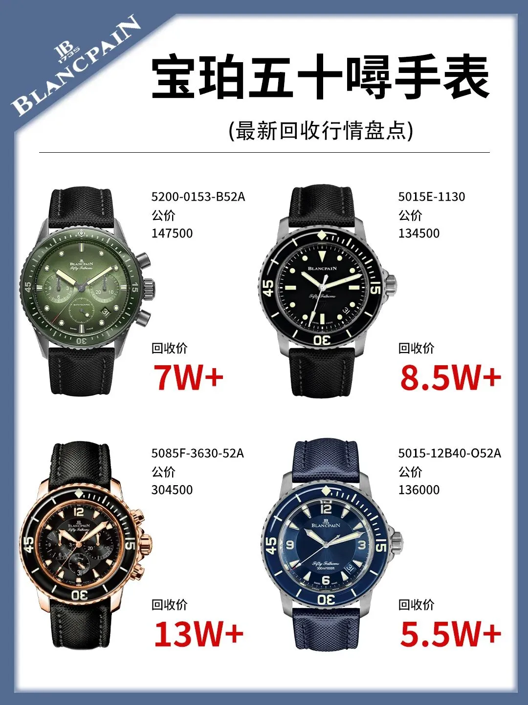 宝珀五十噚系列在二手市场的平均回收价,通常能达到原价的60%至80%,部分经典热门型号甚至能稳定在70%以上。