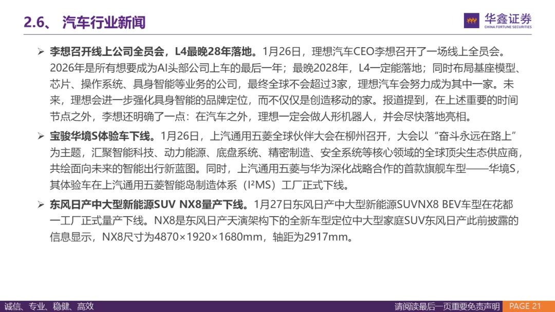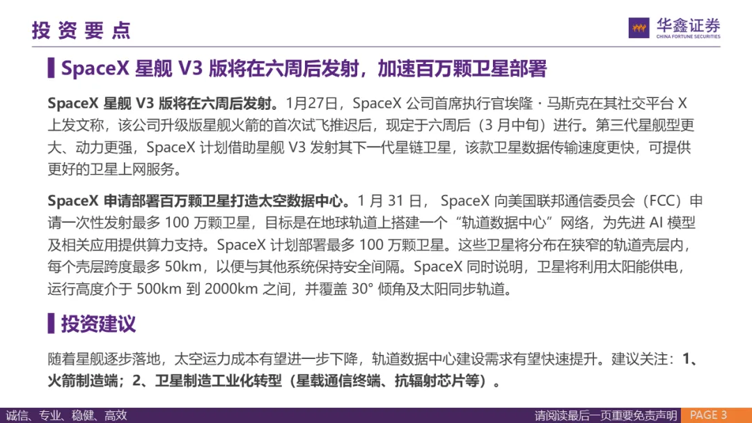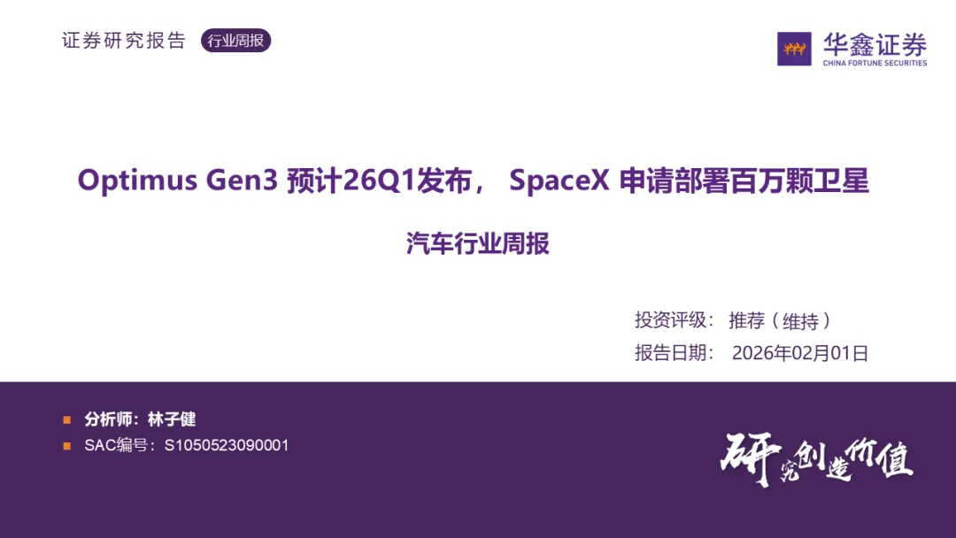 证券研究报告:《汽车行业周报:Optimus Gen3 预计26Q1发布,SpaceX 申请部署百万颗卫星》