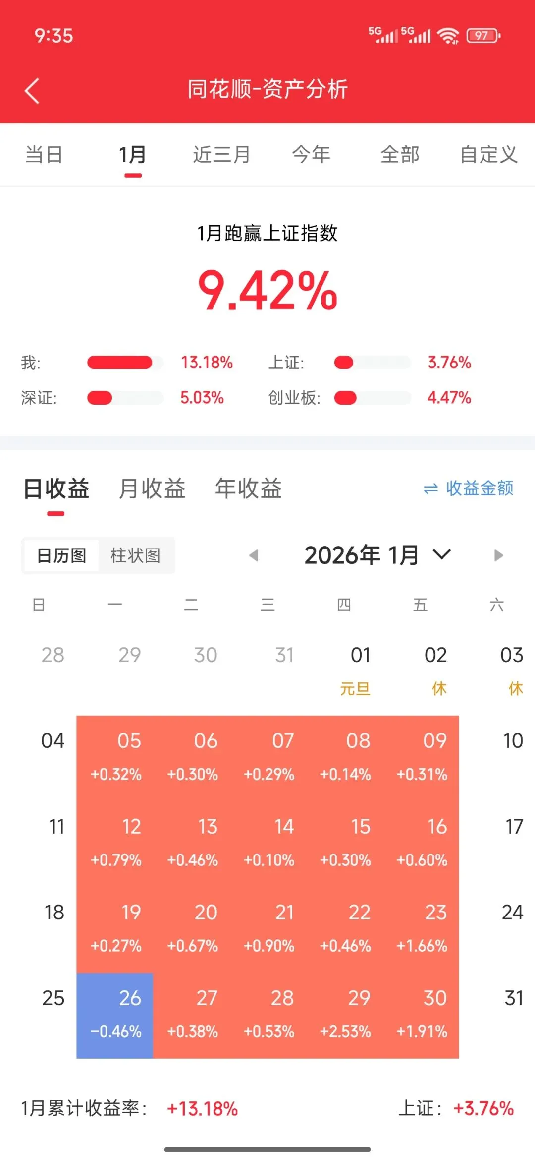 个人持股的配债股,大多数个股的题材并不太符合本月贵金属、有色金属、AI应用、商业航天等题材,所以个股收益也并不是很高。