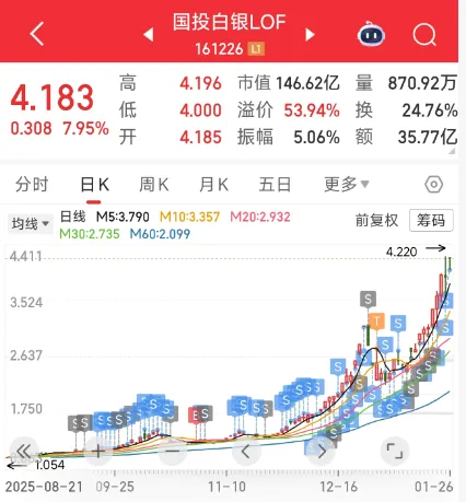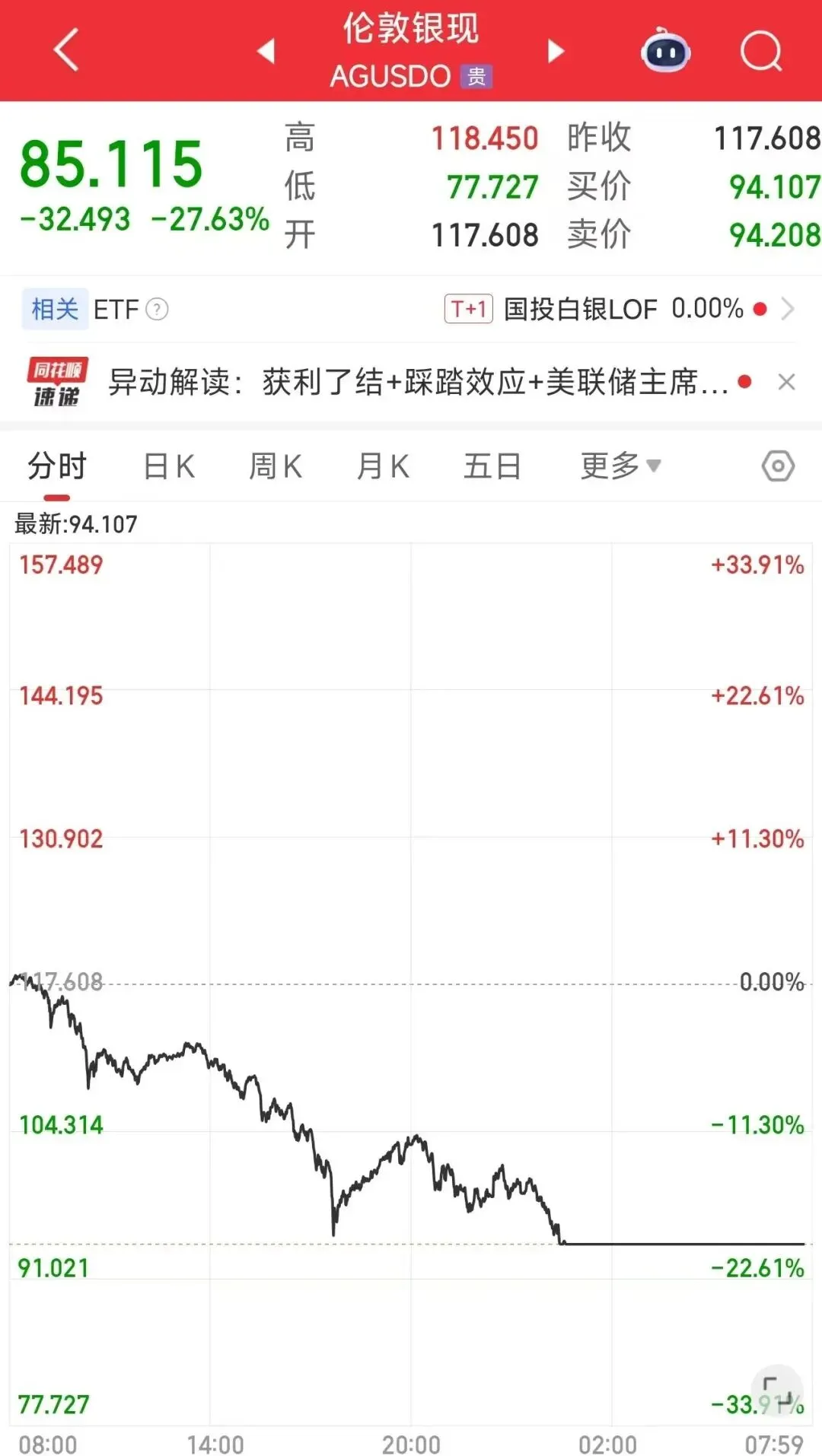 基金公司暂停申购也保护了我,暂停之后夜盘直接大跌27%,感谢白银,感谢国投瑞银,也感谢自己遵循套利的原则,本周四卖出最后的持仓,下周见证历史,看看到底如何。