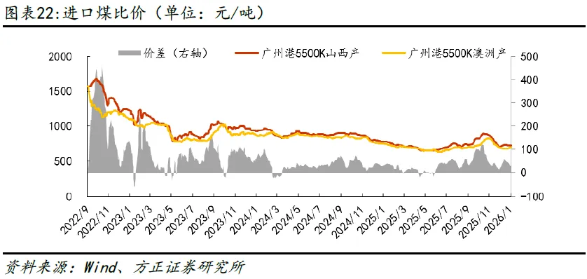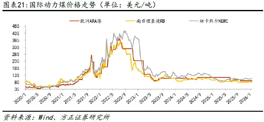 煤炭板块:当前煤炭行业的供给侧收紧成为投资主题,煤炭供大于求的局面有望扭转,随着供给端产能收紧的政策继续在2026年落实,未来也可展望对于进口煤的限制。我们认为长协占比较高的中国神华、中煤能源业绩稳定性较强,如果煤价维持高位,低估值标的兖矿能源(港股)、中煤能源(港股)也有望迎来估值修复。