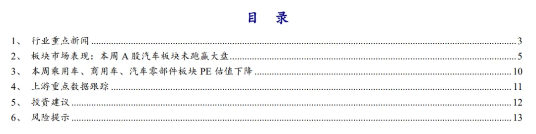(4)政策支持力度不及预期:若以旧换新政策、补能基础设施支持政策、L3级智驾试点政策等支持力度不及预期,可能对汽车行业整体销量、电动智能化转型造成影响。