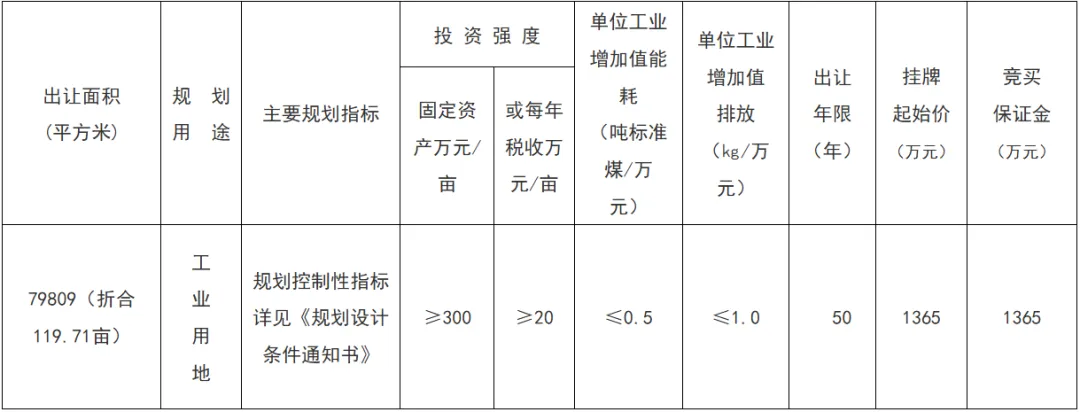 一、挂牌出让宗地位置、控制指标、起始价、保证金及出让年限