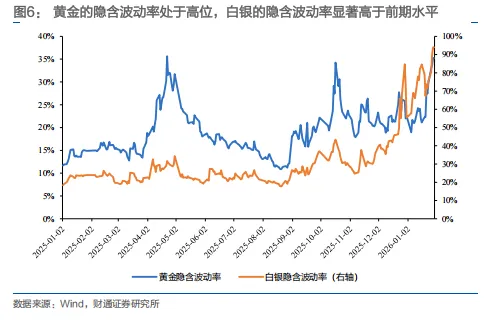 技术面:黄金/白银隐含波动率分别超过35%/94%,均处于历史高位,预示回调风险。
