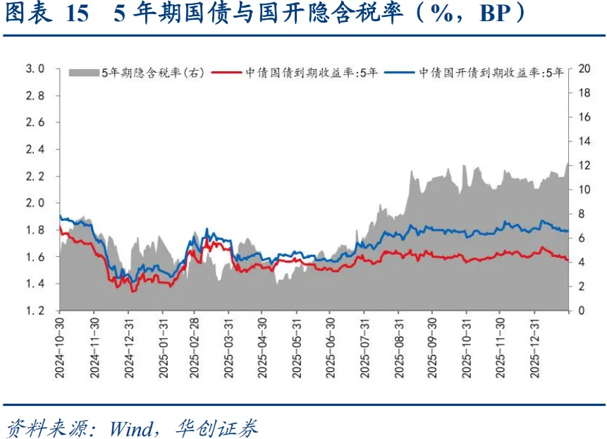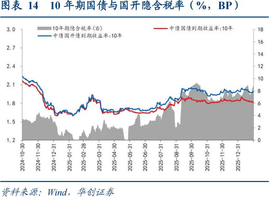 从收益率曲线形态变化来看,国债期限利差收窄,国开债期限利差走扩。具体看,国债短端品种收益率上行1.80BP,国开债短端品种收益率上行0.74BP,国债长端品种收益率下行1.86BP,国开债长端品种收益率上行1.30BP,国债长端品种表现好于短端品种,国开债短端品种表现好于长端品种。从期限利差的绝对水平来看,国债10Y-1Y利差收窄3.66BP至51.13BP,国开债10Y-1Y利差走扩0.56BP至40.32BP。